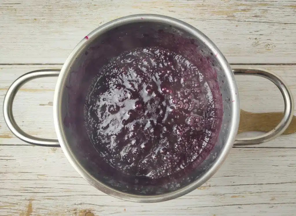 STEP 9: Heat the blueberries with the powdered sugar until the blueberries get completely soft. Blend the blueberries thoroughly with a stick blender.
