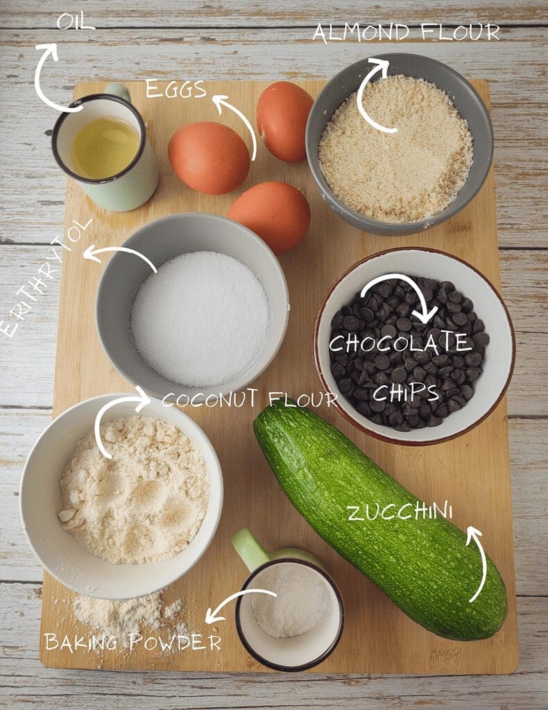🍩 CHOCOLATE CHIPS – keto chocolate zucchini muffins are made with dark chocolate, containing at least 70% of cocoa. When shopping for chocolate chips be careful to read the labels as some chocolate chips are made with sugar.