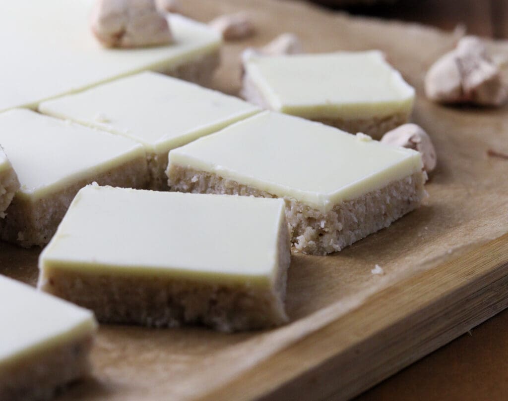 • Make them keto. Replace the sugar with a sweetener (we used erythritol) and use sugar-free white chocolate chips for the final layer. This way, you’ll get an awfully delicious and healthy keto snack that I bet you’ll adore.