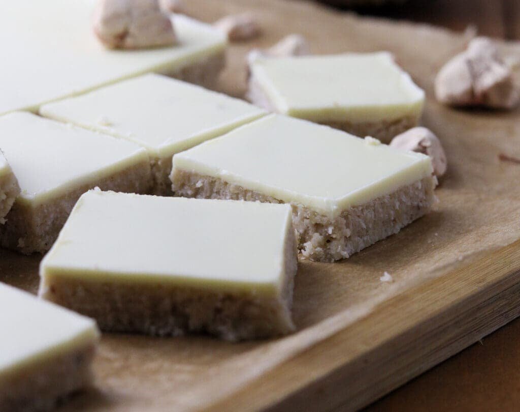 - Make them keto. Replace the sugar with a sweetener (we used erythritol) and use sugar-free white chocolate chips for the final layer. This way, you’ll get an awfully delicious and healthy keto snack that I bet you’ll adore.
