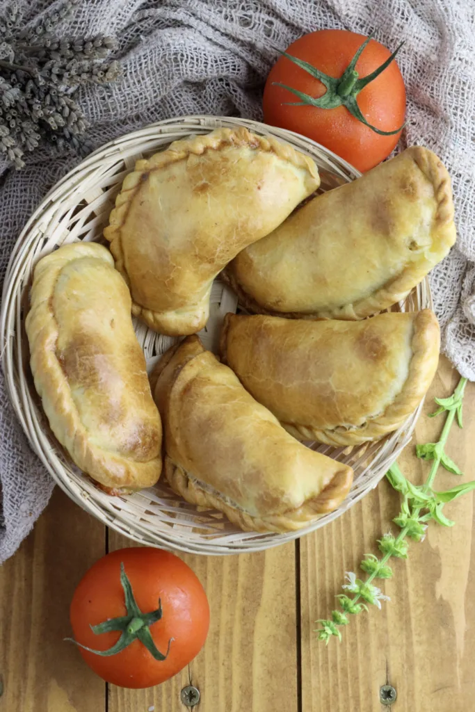 - Make sure you don’t add too much oil to the filling or that the tomato slices aren’t too wet. If you are using soaked mozzarella balls, you might want to give them a good drain before slicing them for the filling. If the filling is too wet or too greasy, it will be harder to seal the edges firmly, and the liquids might leak while the empanadas are being baked.