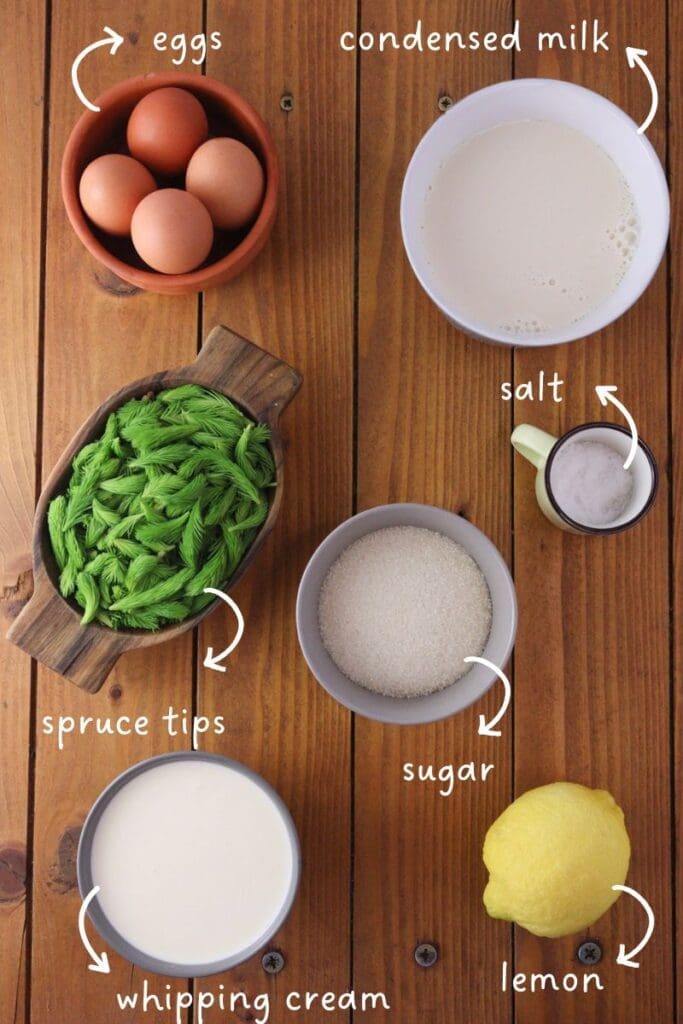 The spruce tips are soaked overnight in sweetened condensed milk and egg yolks, which softens their flavor and draws out that fresh, lemony scent. Folding that into whipped cream makes it light and airy. You don’t need an ice cream maker for this one. Just mix it up in a baking pan, pop it in the freezer, and a few hours later, you’ve got something amazingly tasty.