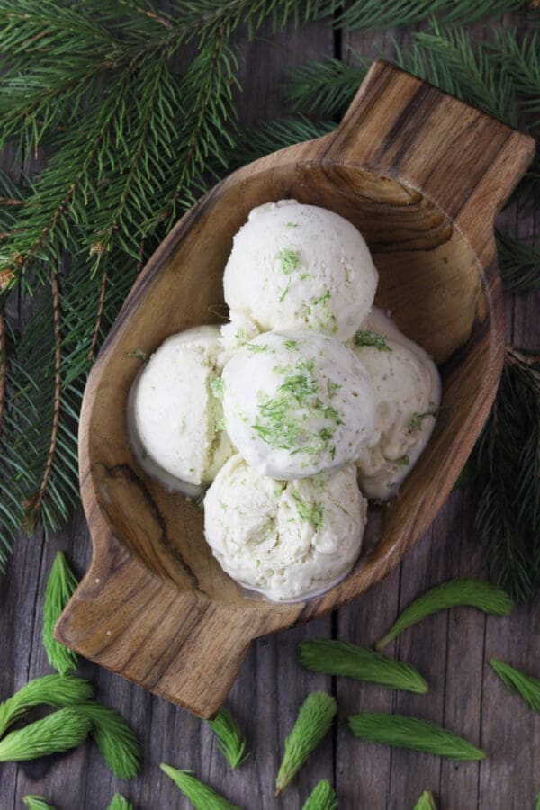 It sounds strange at first, but believe me – this ice cream is something else. The flavor is surprisingly good, it has just the right hint of citrusy spruce paired with creamy sweetness. You can top it with a sprinkle of spruce tip sugar, a drizzle of syrup, or even a bit of chocolate if you like. Those combinations will give your favorite store-bought ice cream a run for its money.